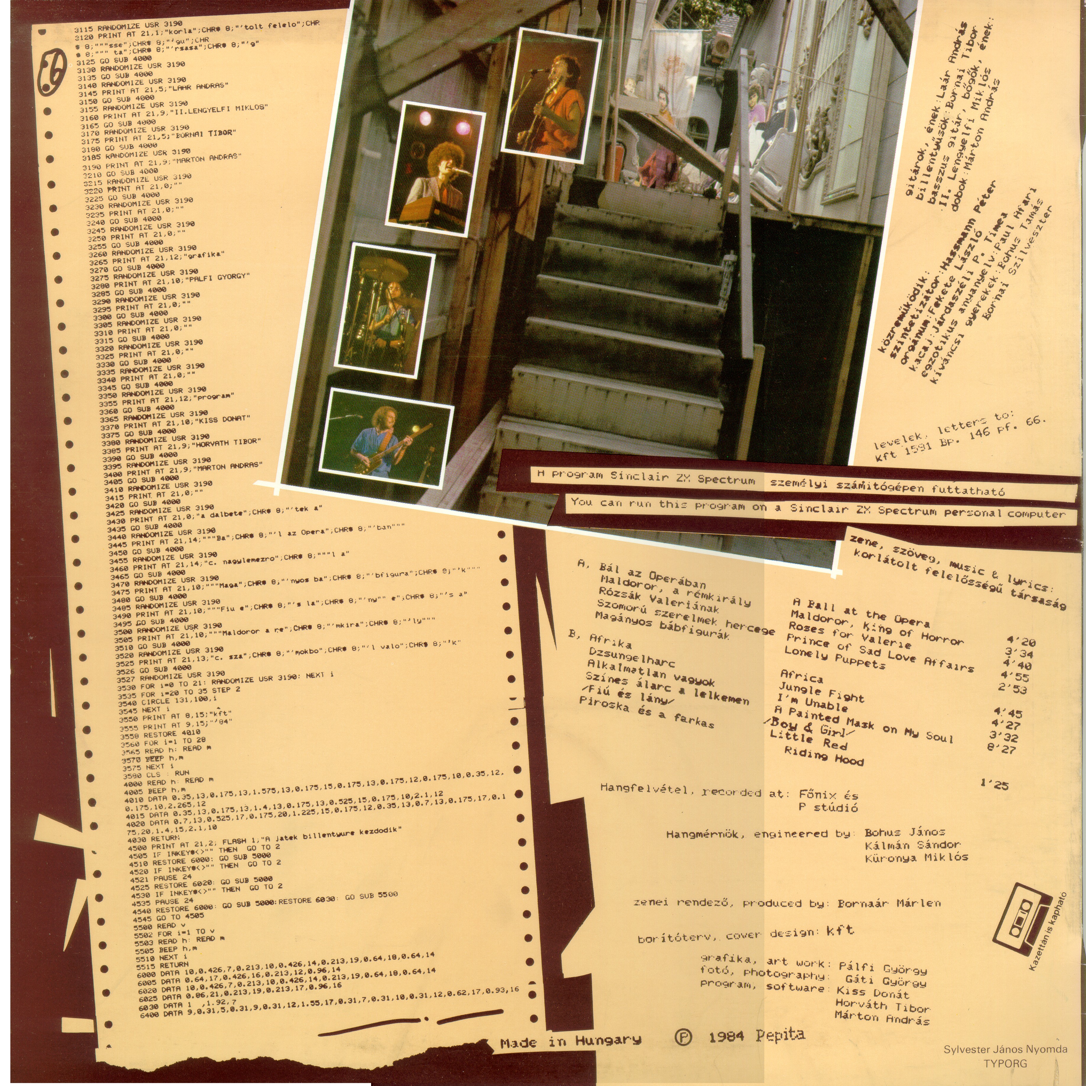 Sinclair.hu: A programterjesztés egy igen érdekes módját választotta a KFT zenekar 1984-ben, manapság ez egy utolsó track lenne a CD-n, akkoriban ez csak a borítón kaphatott helyet a Bál az Operában című albumon. A végeredmény egy nagyon egyszerű labirintus játék, némi KFT zenével körítve, mindenesetre kuriózum ez a program, így mindenképp itt a helye.