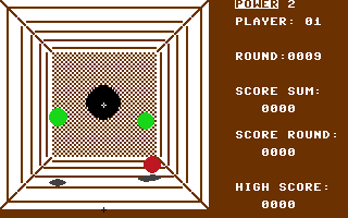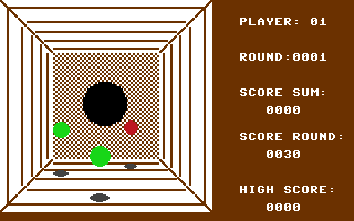 Commodore Újság 1986/5: Egy üvegtetejű kockában folyik a golyók kergetőzése, melybe felülről kukucskálhatunk be. A golyók térbeli helyzetének meghatározása a falra vetődő árnyékból következtethető ki. A cél az, hogy a piros golyóval az általunk meghatározott számú zöld gömböt a doboz alján lévő lyukba üssük, úgy, hogy a piros ne essen bele. A golyó sebességét szabályozni lehet. A térbeli gondolkodást próbára tevő játék a mandinerlehetőségek sokasága miatt, sokáig élvezetes, variációdús szórakozást nyújt. Többen is beszállhatnak egy-egy partiba.