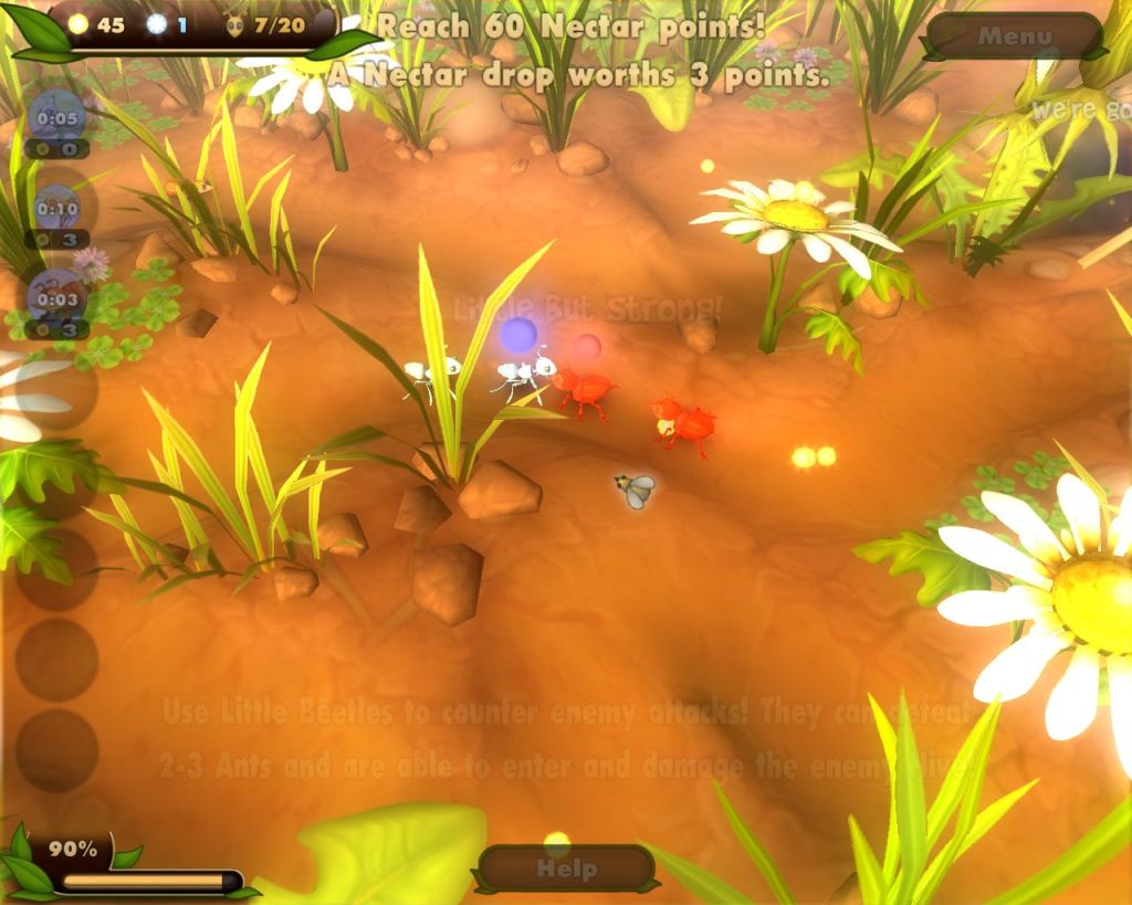 Merülj el a csodálatos életteli rétek mikrokozmoszában, látogass el a meddő sivatagot, vagy fedezd fel a rejtélyes erdőket! Küldd ki a hangyáid és méheid, hogy ételt gyűjtsenek! Védd meg a kaptárad a támadók ellen, a hangya-még seregeddel! …de kik ezek az ellenségek? Miért folynak a harcok? Göngyölítsd fel a rejtélyt és segíts a lényeidnek, hogy megnyerjék az epikus csatákat és végre béke legyen a 39 küldetés végén.