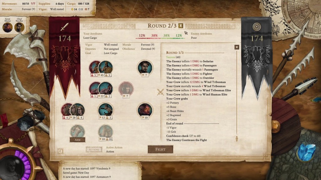 Mindez játékmenet szempontjából egy stratégiai elemekkel erősen megtámogatott 2D-s szerepjáték formájában ölt testet. A csaták körökre osztva zajlanak, ellenfélből pedig akad bőven és változatosan. De nem csak a karavánunk harcosainak vannak egyedi képességei, hanem nekünk, vezetőknek is, ezekkel pedig eléggé el lehet mélyíteni a harcok taktikai oldalát. Két összecsapás között viszont jó vezetőhöz méltón gondoskodnunk kell a karavánról, menedzselnünk kell a szűkös erőforrásokat, figyelnünk kell a csapat moráljára és persze megbízásokat kell teljesítenünk.