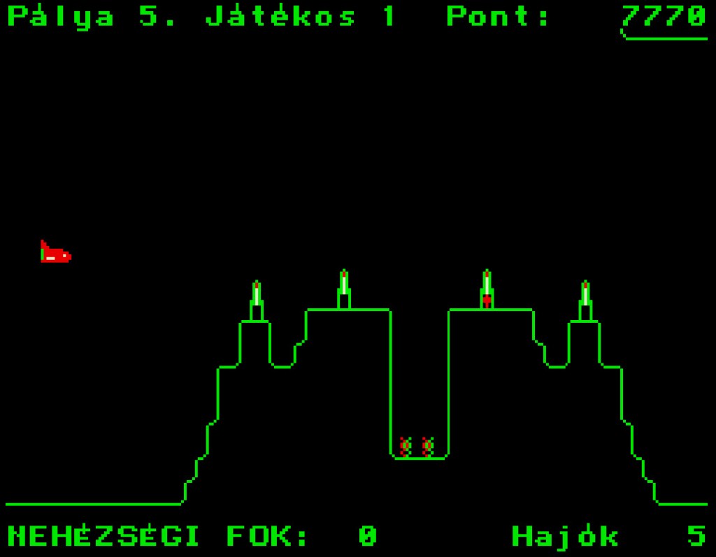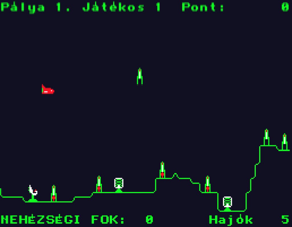 A betöltés után megtudhatjuk, hogy a programot az ‘a’-Studio készítette, valamint elolvashatjuk a program kezelését. A későbbiekben az F1 megnyomásával előhozhatjuk ugyanezt a képernyőt. A STOP-pal leállíthatjuk a játékot (PAUSE), a CTRL, és a LOCK billentyűkkel beállíthatjuk a kívánt nehézségi szintet (a játék közben). 9 nehézségi szint van, a nehezebb fokozatokon pofátlanul követnek minket a rakéták. Az ENTER+0-val visszatérhetünk a menübe. Az űrhajót a beépített joy-al irányíthatjuk, a SPACE-el bombát dobhatunk, a J megnyomásával lőni tudunk (a program info-lapján el van írva…). A J billentyű nem működik 0-s nehézségi szinten, ha abban játszunk, marad helyette a K billentyű nyomogatása. Az ENTER megnyomásával léphetünk tovább.