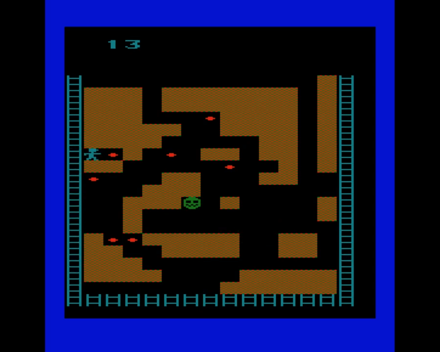 Komputerkalandor: Ezúttal egy gyémántbányász bőrébe bújhatunk, akinek célja az összes ragyogvány összegyűjtése, anélkül, hogy találkozna a bányarémmel. Elsőre amolyan Boulderdash-klónnak tűnhet a játék, de nem az. Itt kizárólag a pálya szélén látható létrákkal mozoghatunk felfelé. Ezen kívül a kiásott alagutakban is hat ránk a gravitáció. Tehát ha visszatérünk egy függőleges járatunkba/tárnánkba, akkor lezuhanunk rajta. Amennyiben egy ilyen járat magasabb, mint hat szint/egység, akkor hősünk szörnyethal. Természetesen akkor is meghal, ha elkapja a zöld fejű bányarém.
