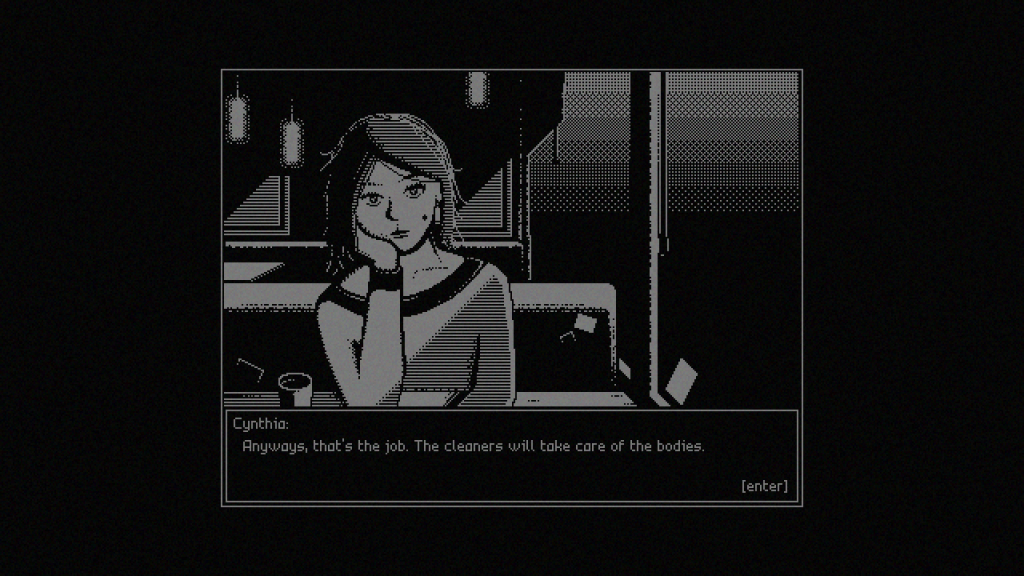 A REPOSE egy különös és szinte meditatív utazás a bizonytalanság sötét mélyébe. A játék első pillantásra talán megtévesztő lehet: fekete-fehér, 1-bites pixelgrafikája elsőként a klasszikus korszakot idézi, de gyorsan kiderül, hogy itt nem nosztalgiáról van szó. A grafikai stílus nemcsak esztétikai döntés, hanem a játék atmoszférájának egyik legfontosabb építőeleme, amely folyamatos feszültségben tartja a játékost. A vizuális minimalizmus mögött minden képkocka tudatosan komponált: a környezet rideg, idegen, és egyre zavarba ejtőbbé válik, ahogy mélyebbre hatolunk a létesítményben.